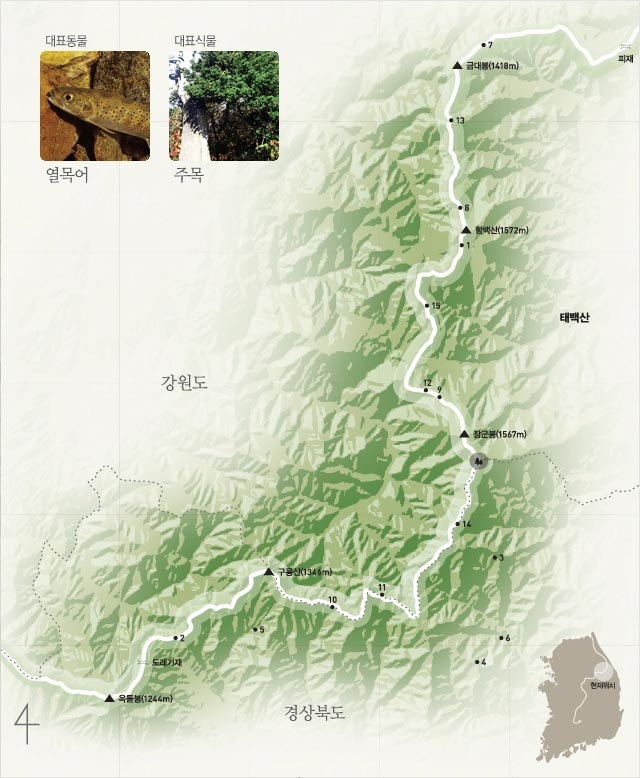 현재 백두대간 중 특별히 보호가 필요한 곳은 백두대간 보호지역으로 지정되어 있다.