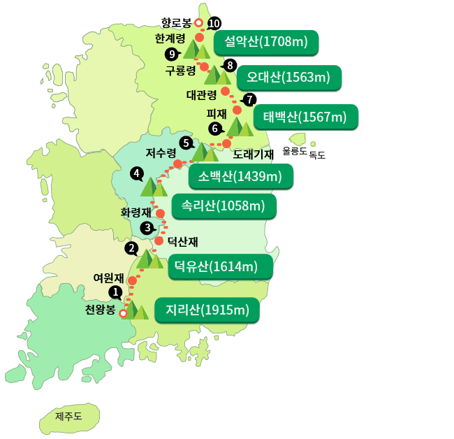 - 상기 대간 일정은 기후와 상황에 따라 구간 및 코스가 변경될 수 있습니다